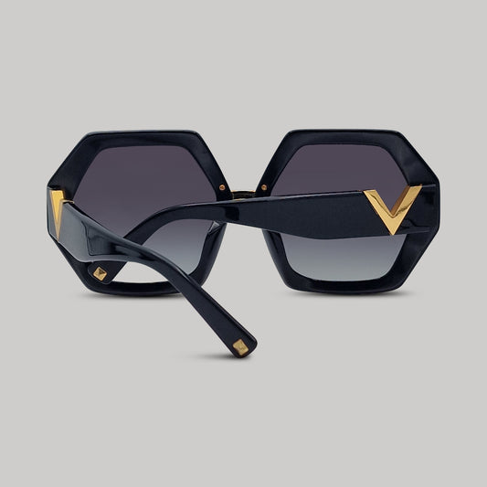 Valentino Black Hexagonal Oversized VLOGO Acetate Sunglasses