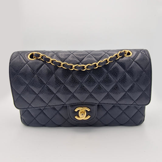 Chanel Black Medium Classic Double Flap Bag in Caviar Leather with Gold Hardware
