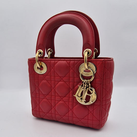 Dior Red Mini Lady Dior Cannage Lambskin Handbag