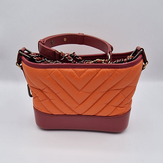 Chanel Orange & Red Small Gabrielle Vintage Calfskin Leather Hobo Bag