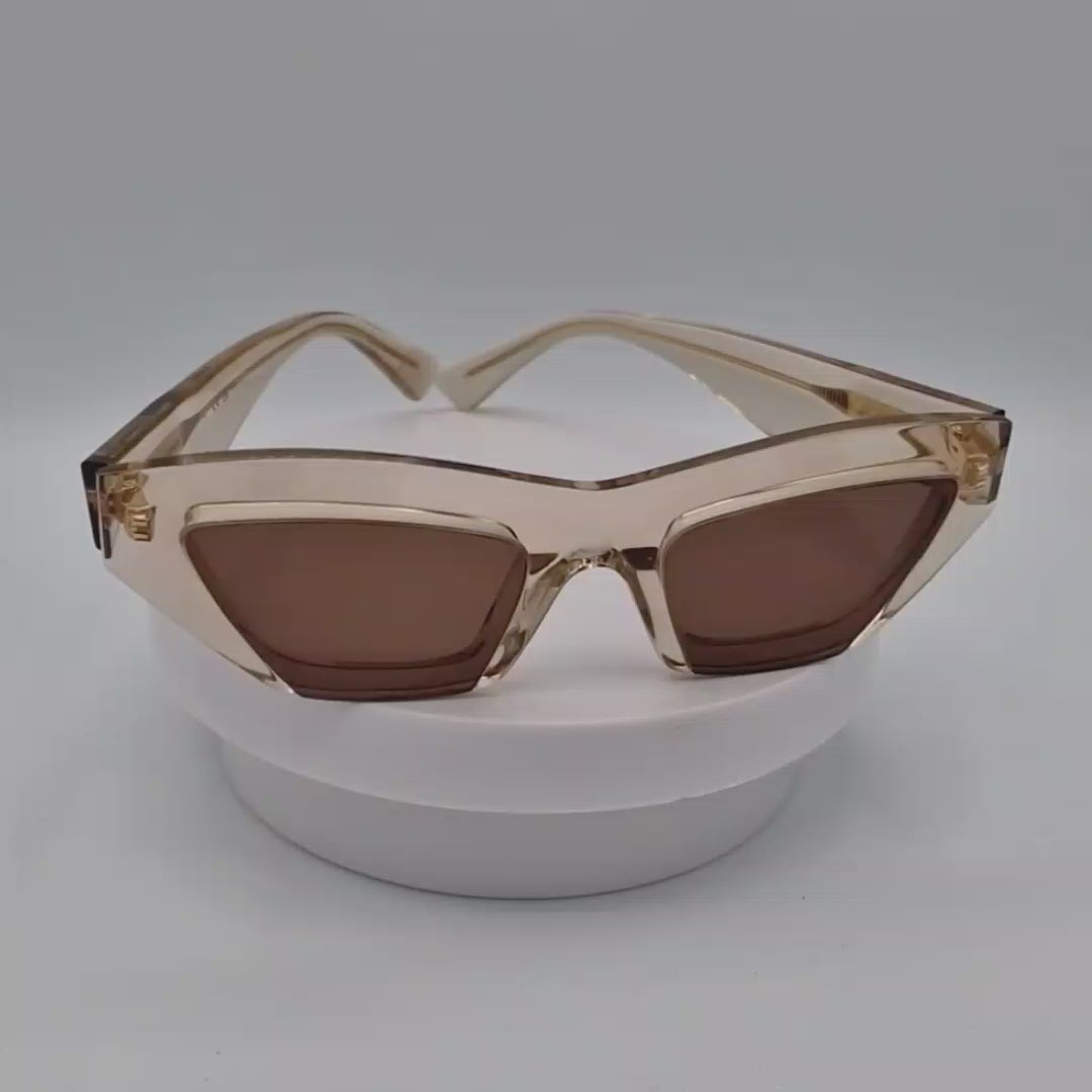 Bottega Veneta Beige Cat-Eye Acetate Sunglasses With Gold Detail
