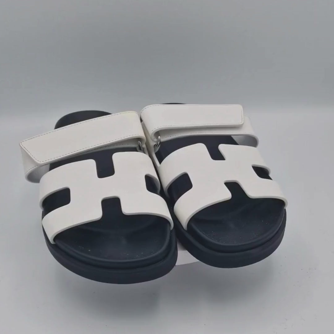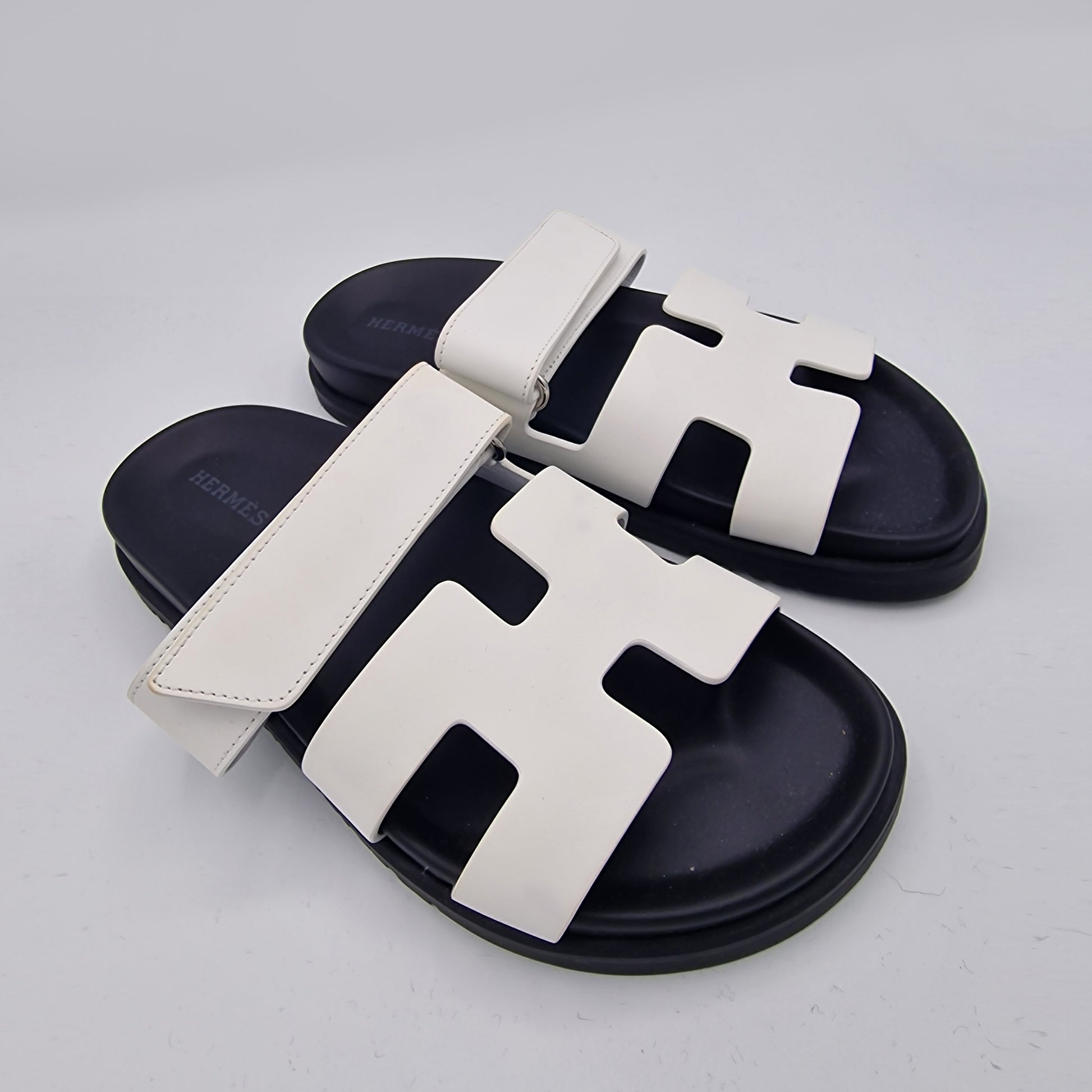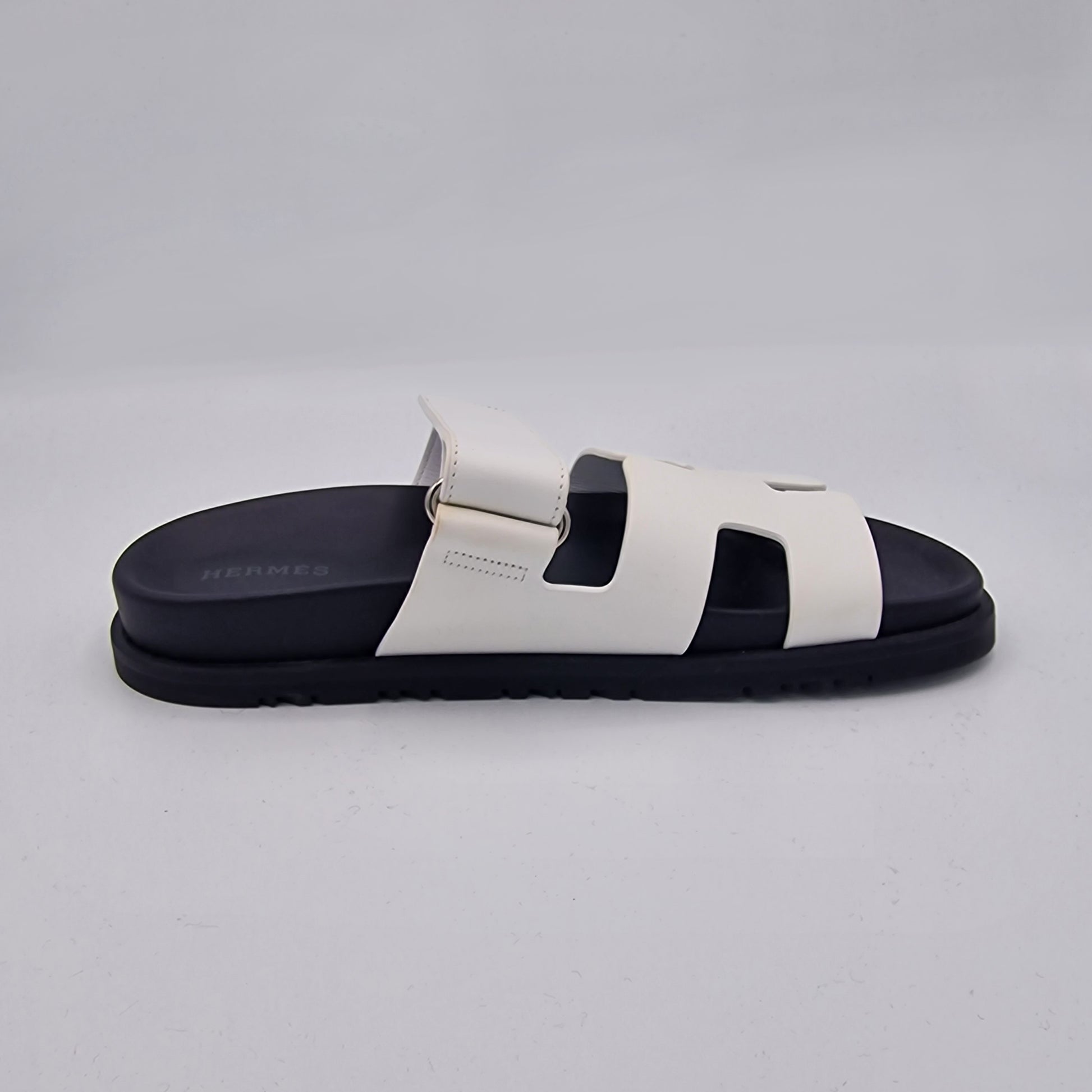 Hermes White Calfskin Leather Chypre Sandals Size EU 36.5
