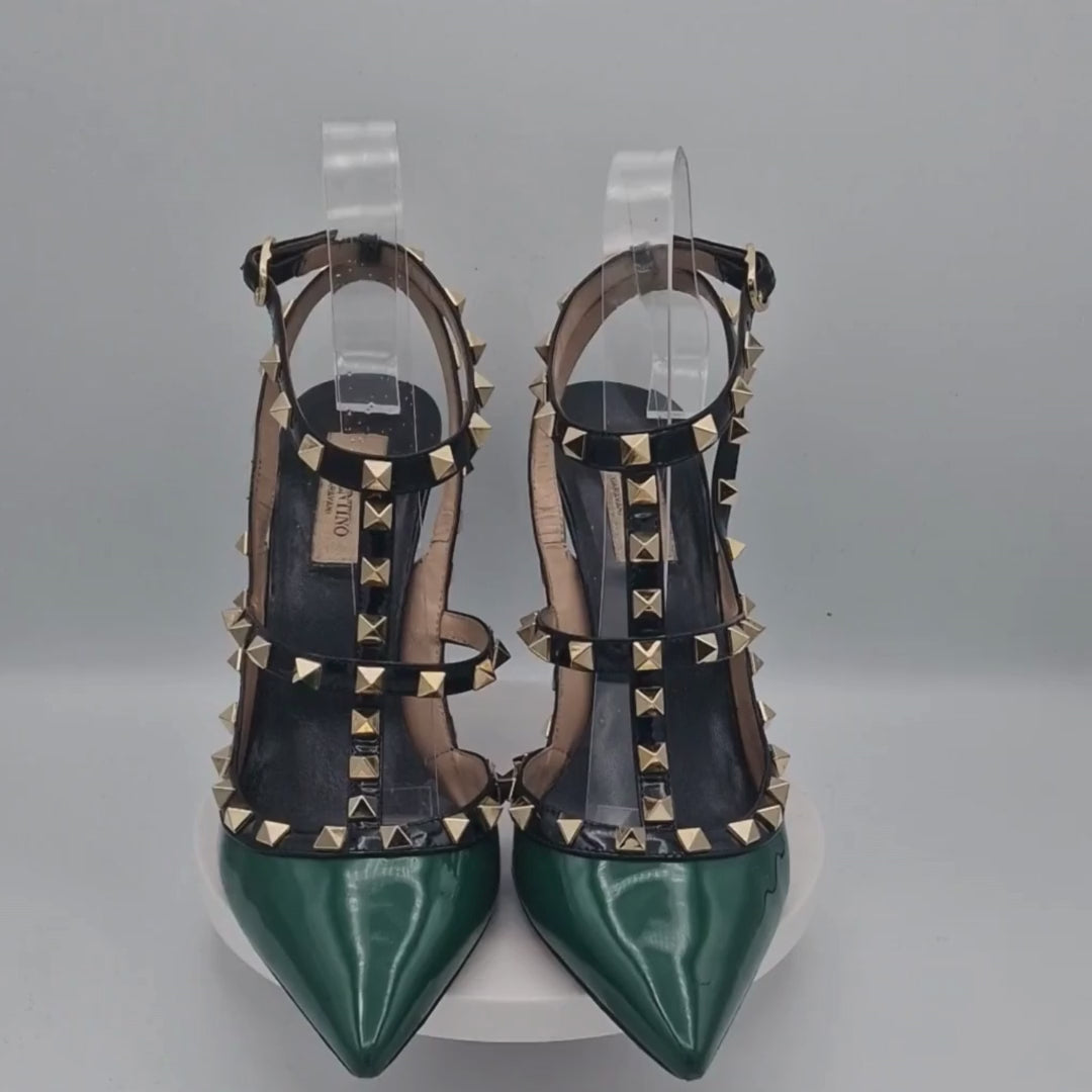 Valentino Green Rockstud Patent Leather Heels 100 Size EU 39.5